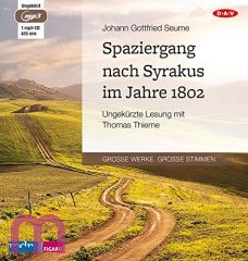 Im Jahr 1802 wandert Johann Gottfried Seume von Grimma bei Leipzig bis nach Syrakus auf Sizilien. Zunächst ist es lediglich eine unglückliche Liebe, die ihn aus seinem beschaulichen Heimatort hinaustreibt, doch im Verlauf der Reise wächst ihm Italien mehr und mehr ans Herz. Was er unterwegs erlebt, hält er in seinen Aufzeichnungen fest. Dabei sind ihm die zeitgenössische Politik und Kultur, vor allem aber die Menschen, denen er begegnet, wichtiger als jede Bildungsschwärmerei. Der unterhaltsame Bericht von seiner neunmonatigen Wanderschaft machte den Autor schlagartig berühmt und erscheint nun als ungekürzte Lesung mit Thomas Thieme.